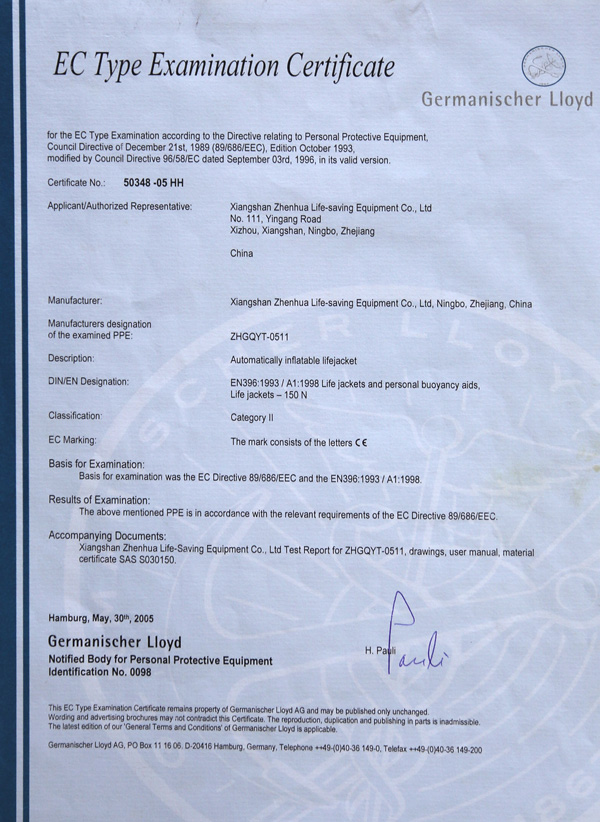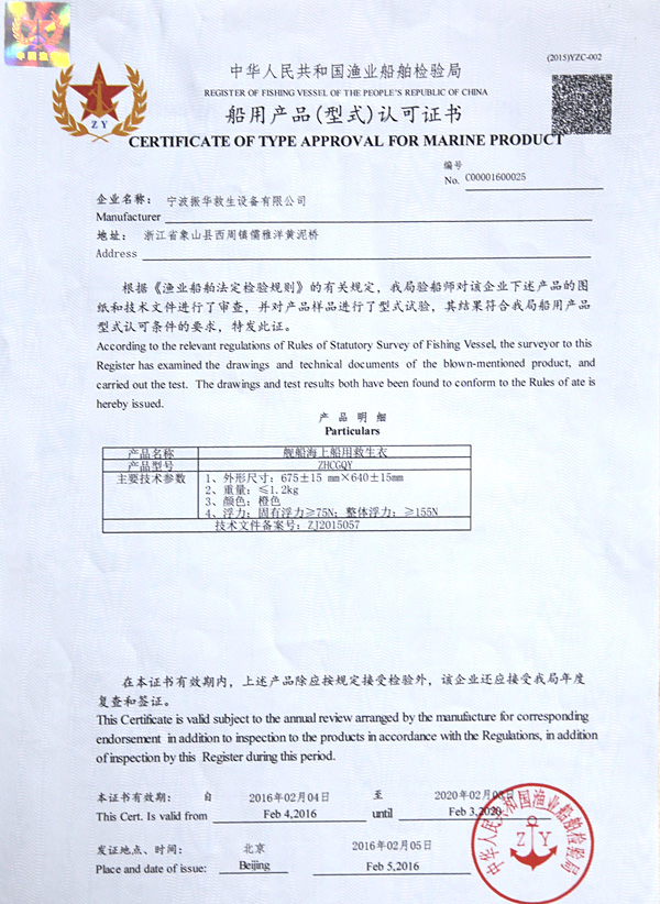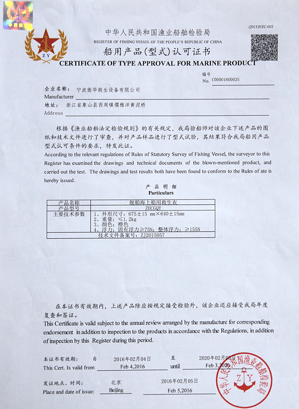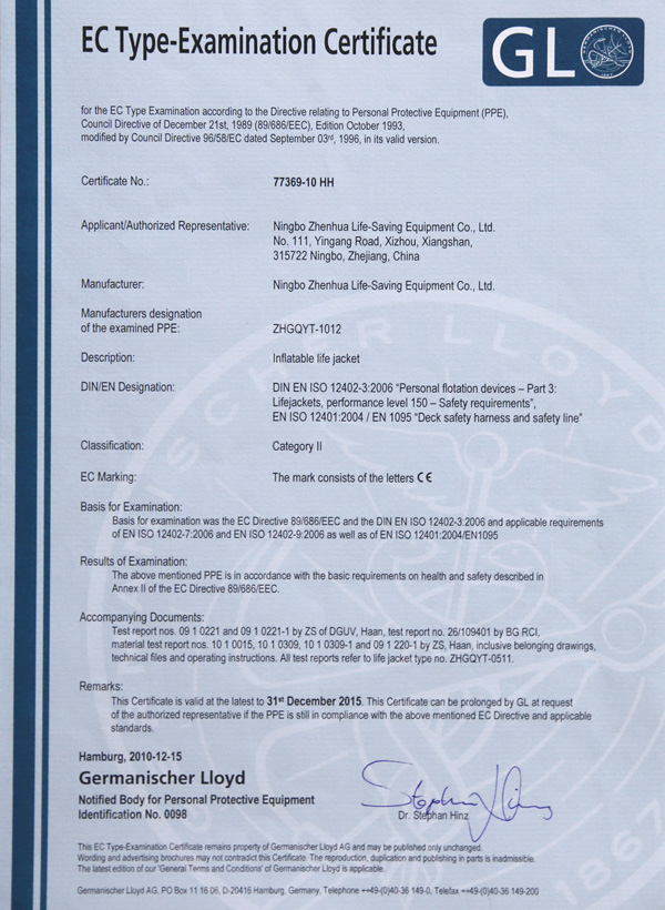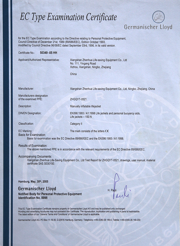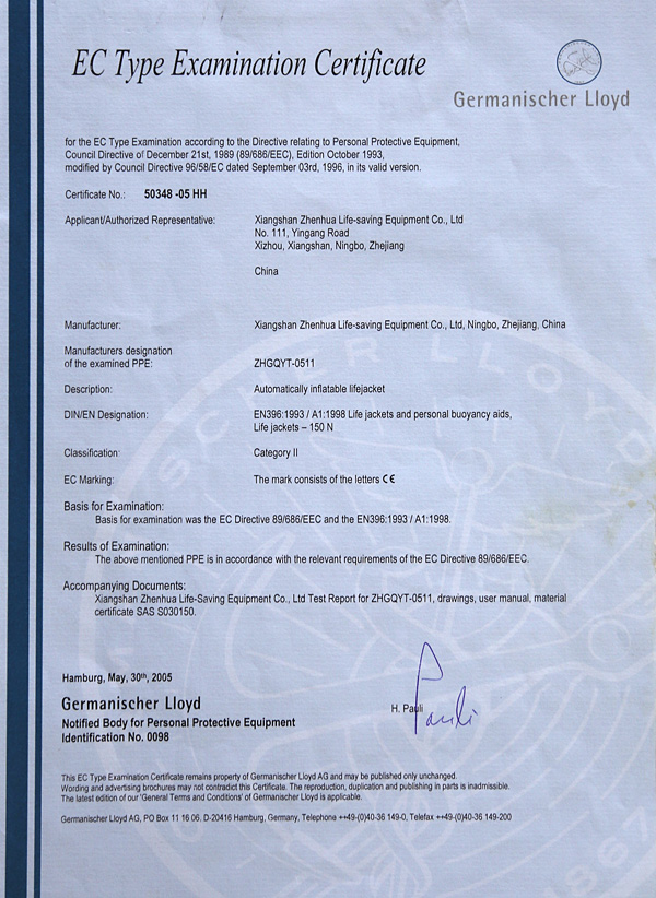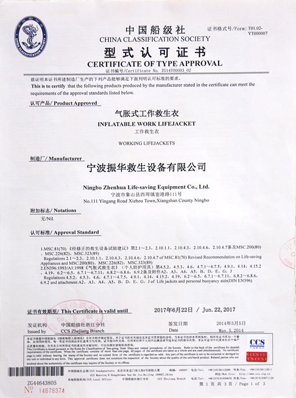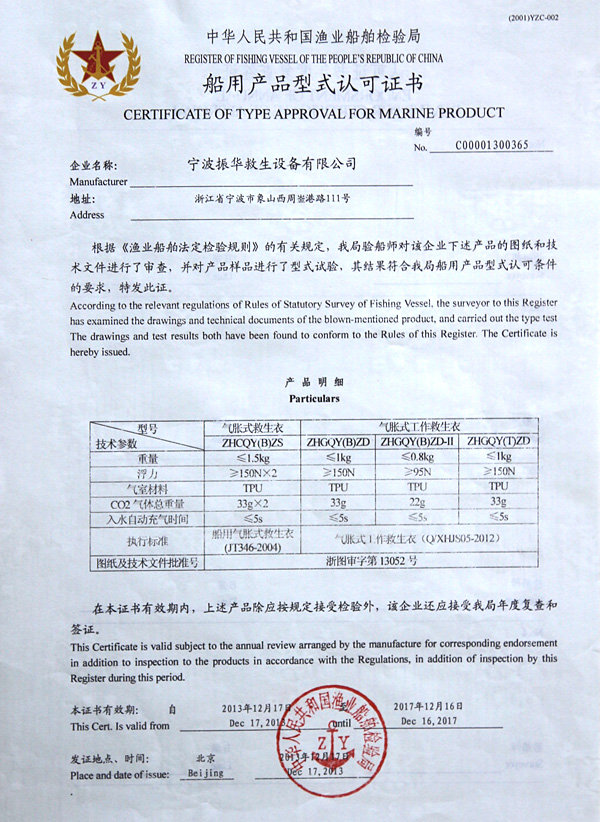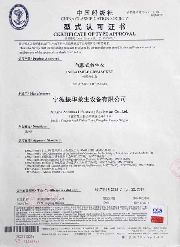 የቬስት አይነት Inflatable የህይወት ጃኬት